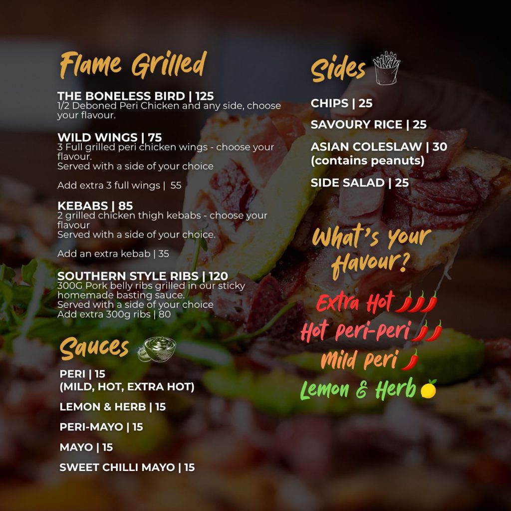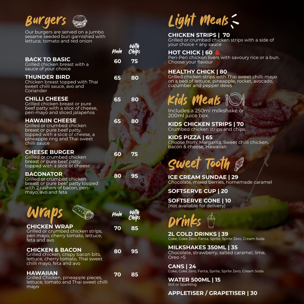 Pizza, Chicken, Burgers, Wraps, Ribs and more.